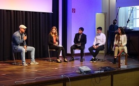 Steffen Baumgart erzählte dem Schülersprecherteam in einem Interview, dass er auch im Sport häufig Rassismus erlebe. Er berichtete, wie vielseitig Diskriminierung sei und ging auf die Affenlaute in Stadien ein, durch die auch einige SCP-Spieler von den Zuschauerrängen beleidigt worden seien. Im Gegensatz dazu machte Baumgart deutlich: „Das beste Beispiel für uns alle weltweit ist, wie Sportler aus allen Nationen miteinander umgehen: Wenn wir bei den olympischen Spielen sehen, wie viele Nationen zueinander finden und wie viel Freude da ist, zeigt das, wie die Welt sein kann bzw. sein könnte.“ Zum Schluss appellierte er abermals an die Courage jedes Einzelnen und verdeutlichte, wie wichtig es sei, diese Courage im Alltag zu zeigen.