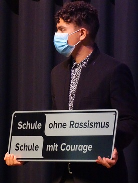 Im Rahmen der Zertifizierungsveranstaltung vor den Herbstferien wurde „Eine Sprache“ von Parallel feat. Cassandra Steen aufgeführt. Der Song thematisiert, dass wir trotz Unterschieden alle gleich sind und auch so behandelt werden müssen. Das ist auch die Zielrichtung der Zertifizierung. Dabei geht es nicht nur um Rassismus, sondern um Diskriminierung jeglicher Art (Aussehen, Sexualität, Herkunft, Religion). Die Auszeichnung dokumentiert nun die Selbstverpflichtung aller am Schulleben des Gymnasium Theodorianum Beteiligten, sich aktiv gegen Diskriminierung einzusetzen.