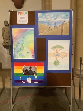 Ausstellung von Wettbewerbsbildern zum Thema „Friedensplakat“ (Lions International) im Paderborner Dom
