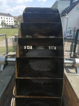 Die erste Tour führte vom Funktionsmodell der städtischen Wasserkunst im Paderquellgebiet über die alte Steigleitung, deren Spuren man an einigen Stellen z. B. in der Jühengasse noch erkennen kann, bis hin zum Tiefenbrunnen der Jesuiten in der Theologischen Fakultät. Das politische Gerangel um die Ressource Trinkwasser führte im 17. Jahrhundert zur „Wassernot der Jesuiten“, erklärte uns Prof. Dr. Michael Ströhmer von der Universität Paderborn. Die Mönche waren gezwungen, einen eigenen 14 Meter tiefen Brunnen ins Karstgestein zu treiben, der aber zu wenig und Wasser schlechter Qualität lieferte. Erst mit der Genehmigung einer eigenen jesuitischen Wasserkunst, etwas oberhalb der städtischen, und der Klärung von Besitzverhältnissen und Nutzungsrechten von Leitungen verschiedener Grundstücke konnte die 30jährige Wassernot der Jesuiten beendet werden.