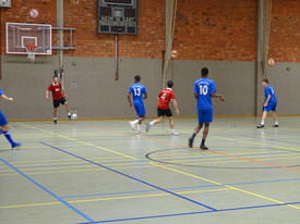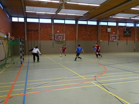 Die Auslosung ergab direkt als Eröffnungsspiel das Aufeinandertreffen des Rekordsiegers der Ehemaligen gegen das Team der Lehrer. In dem Spiel zeigten sich direkt die technischen Fähigkeiten der Ehemaligen, denen es gelang mit präzisem Kurzpassspiel das Lehrerteam in die Defensive zu drücken. Auch wenn einzelne kleine Nadelstiche gesetzt werden konnten, waren die Spielanteile hier doch recht klar verteilt. Dem Lehrerteam gelang es aber mit einer beherzten Verteidigungsarbeit hinten die Null zu halten und so mit dem torlosen Unentschieden einen ersten Achtungserfolg zu erringen.