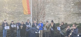 Im Anschluss legte Bürgermeister Michael Dreier sowie Vertreter der Bundeswehr und der britischen Truppen Kränze nieder, während die Turmbläser unter der Leitung von Dr. Robert Liebrand ein Largo von Händel spielten. Als Eingangsstück hatten sie bereits ein Adagio von Mendelssohn-Bartholdy gespielt und als Abschluss erklang das berühmte Lied Bonhoeffers „Von guten Mächten wunderbar geborgen“.