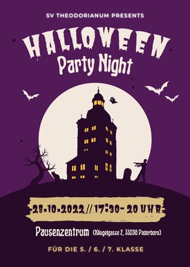 Wir, die SV, laden euch, die 5., 6. und 7. Klasse, herzlich zu unserer diesjährigen Halloween Party Night ein. Freut euch auf einen spannenden und schaurigen Abend mit euren Freunden. Der Grusel findet am 28. Oktober im Pausenzentrum (Klingelgasse 2; 33098 Paderborn) statt. Auf euch warten von 17.30 Uhr bis 20 Uhr ein kreativer Kostümwettbewerb, gespenstische Spiele und viele weitere mystische Überraschungen.
