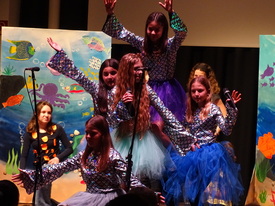 „Im Riff geht's rund“ - die bunte Unterwassershow mit Tiefgang entführte 300 Grundschüler:innen am Dienstagvormittag und die Schulgemeinschaft in der wiederum vollbesetzten Aula am Mittwochabend in die Welt der Meeresbewohner, deren Überleben im Korallenriff auf die Probe gestellt wird. Phantasievoll kostümiert präsentierte die Musikklasse 6a unter der Leitung von Susanne Göbel das einstündige Musical.