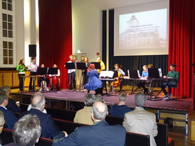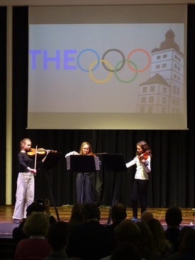 Einen Einblick in die musikalische Arbeit konnte das Publikum bereits durch den Auftritt des Musikkurses der Q2 unter der Leitung von Susanne Göbel sowie eines Streicherterzetts bestehend aus Schülerinnen der Klasse 8a gewinnen, die den Abend musikalisch rahmten.