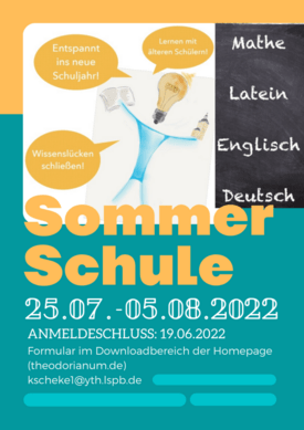 In diesen Sommerferien möchte das Gymnasium Theodorianum wieder eine Sommerschule in der Zeit vom 25.07.2022 bis 05.08.2022 anbieten.