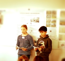 Am Samstagvormittag fand der Höhepunkt der Veranstaltung statt: Vier ausgewählte Schülerprojekte wurden dem Plenum vorgestellt. Dies haben Nella Köchling und Elwin Moor souverän für das Gymnasium Theodorianum übernommen. Das Paderborner Projekt zum Gartendenkmal Paderquellgebiet und zur Wasserkunst der Jesuiten stand damit neben den weiteren vorgestellten Projekten zur chemischen Analyse der Carbonatisierung an Beton (Ruhr-Gymnasium Witten), zur Zeitzeugengeschichte der Textilfirma Nino (Evangelisches Gymnasium Nordhorn) und zum römischen Kastell Aachen (Heilig-Geist-Gymnasium Würselen) im Mittelpunkt.