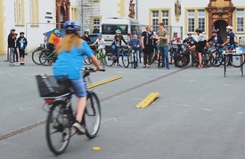 Viele unserer Schülerinnen und Schüler kommen mit dem Bus zur Schule, andere zu Fuß und ganz viele kommen mit dem Fahrrad. Da unsere Schule mitten in der Stadt liegt, müssen alle auf ihrem Schulweg besonders gut im Verkehr aufpassen. Daher führen wir mit den 6. Klassen einmal im Jahr einen Tag zur Verkehrserziehung durch.