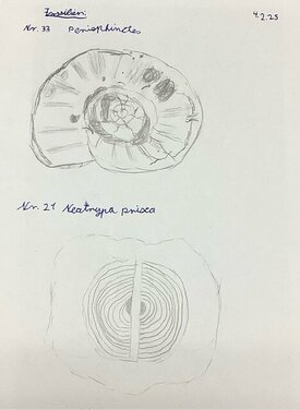 An diese beiläufige Entdeckung erinnerten sich die Kinder, als es im Unterricht um die Frage ging, wie eigentlich Fossilien entstehen. Zuvor hatten die Schülerinnen und Schüler aus der kleinen, aber feinen Fossiliensammlung der Biologie einige Anschauungsobjekte in die Hand genommen und zeichnerisch studiert. Das Interesse ist groß: Welche Strukturen sind zu erkennen? Wie alt sind die Funde? Wie werden Repliken hergestellt? Und unsere aktuelle Frage: Was muss alles geschehen, damit aus unserer Möwe aus Borkum ein Fossil wird? Dazu wälzen wir Bücher und recherchieren im Netz. Und wissen bereits Stand heute: Der Regelfall ist, dass die „Borkumer Möwe“ und andere ordentlich „recycelt“ werden, zu Nähr- und Mineralstoffen. Ein Grund dafür, dass der Wattboden vor Borkum so voller Leben ist. Dass hingegen ein Fossil entsteht, ist also sehr unwahrscheinlich und hängt neben dem Faktor Zeit eben auch von Sedimentbildung, Sauerstoffmangel und Druck ab.