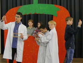 In den von ihnen selbst entwickelten Rollen agierten die jungen Akteure unter der Leitung des Theaterpädagogen Dirk Früchtenicht mit großer Spielfreude und scheuten auch nicht vor eigentlich "erwachsenen" Themen wie "Der Sinn des Lebens" oder "Wissenschaft und Verantwortung" zurück. Der herzliche Applaus war die angemessene Belohnung der neunmonatigen Vorbereitungszeit.