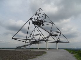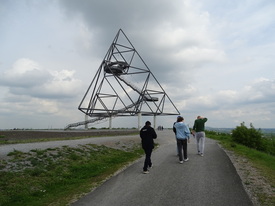 Außerdem konnten wir verschiedene Chemiefabriken, Gasometer, Kokereien und sogar eine Skihalle sehen. Diese Halden als Zeichen der industriellen Vergangenheit werden heute für andere Zwecke genutzt. Einige der Halden werden beispielsweise für den Bau von Solarkraftwerken und Windkraftanlagen verwendet. Es gibt auch Kunstinstallationen, die die Verbindung zwischen dem Tetraeder und dem Bergbau symbolisieren.