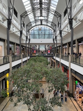 Nach einer zwanzigminütigen Fahrt erreichten wir das Centro in Oberhausen. Das Centro ist ein großes Einkaufszentrum, dessen Eröffnung den Einzelhandel in der Umgebung gefährdete. Wir hatten eine Stunde Zeit, um uns zu stärken und das Angebot des Einkaufszentrums zu erkunden. Außerdem konnten wir jetzt den Gasometer sehen, den wir zuvor vom Tetraeder aus beobachtet hatten und der heutzutage als Ausstellungsort dient.