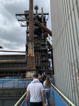 Nach der Pause setzten wir unsere Exkursion fort und fuhren nach Duisburg. Um 14:20 Uhr erreichten wir den Landschaftspark Duisburg-Nord, der auf dem Gelände eines ehemaligen Hochofens für die Herstellung von Roheisen mit Koks errichtet wurde. Die Kohle und die Weiterverarbeitung von Koks waren für diesen Prozess unerlässlich. Der Landschaftspark bietet heute vielfältige Freizeitmöglichkeiten, darunter einen Hochseilpark in der Gießhalle, Tauchunterricht im Gasometer sowie ein Sommerkino und Veranstaltungshallen.