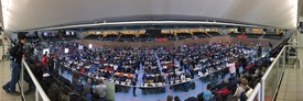 Gemeinsam mit drei anderen Schulen aus dem Kreis Paderborn fuhr man am 09.03. in aller Frühe mit dem Bus nach Düsseldorf. Im vergangenen Jahr fanden die Landesmeisterschaften noch in der Stadthalle in Kamen statt. Dieses Jahr wurde ein noch größerer Spielort gewählt: das Castello in Düsseldorf. Doch auch diese große Mehrzweckhalle, die bei Konzerten etwa 5.000 Zuschauer fasst, war rappelvoll.