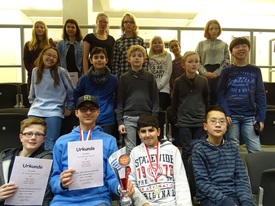 Und auch die WK-Mädchen-Mannschaft des THEO (Lena Vollbracht, Meike Bornemann, Antonia Sophie Kurtovic, Isabelle Sprick, Lina Kramer, Laila Elgabarty) konnte einige Siege verbuchen und landete bei ihrer ersten Teilnahme am Ende auf dem 14. von 23 Plätzen.