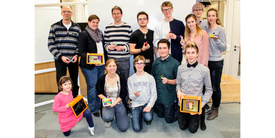 Bei der Präsentation der Ergebnisse vor der Schulleitung, den Auftraggebern sowie Projektbetreuern und -begleitern im Heinz Nixdorf Institut wurde die Entstehung der Software „Pentomino“ vorgestellt. Auftraggeberin Prof. Dr. Katja Eilerts testete die App vor Ort mit ihrer Tochter Lara und sprach der Projektgruppe ein großes Lob aus. Auch die Betreuer zeigten sich sehr zufrieden: „Ihr ward ein funktionierendes Team und habt immer konstruktiv zusammengearbeitet“, sagte Annika Löhr.