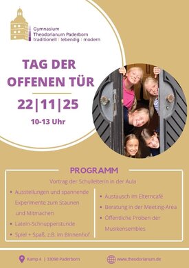 Unser Tag der offenen Tür 2025 findet am 22. November in der Zeit von 10 bis 13 Uhr statt. Wir freuen uns auf Euer und Ihr zahlreiches Erscheinen. Es wird ein buntes Rahmenprogramm angeboten und zusätzlich gibt es Informationsangebote sowohl für unsere neuen Fünftklässler:innen, als auch für Interessierte, die einen Wechsel in unsere Oberstufe anstreben.